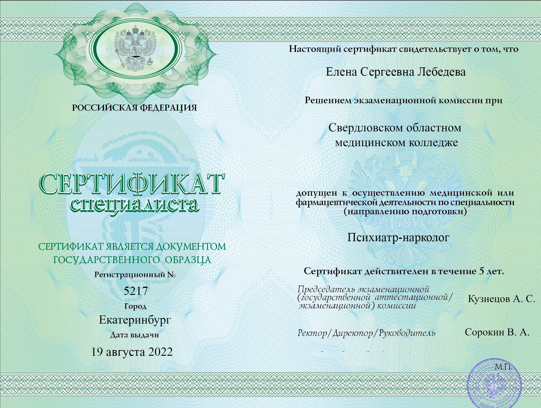 Елена Сергеевна Лебедева врач нарколог клиники доктора Стукаловой в Сосновоборске